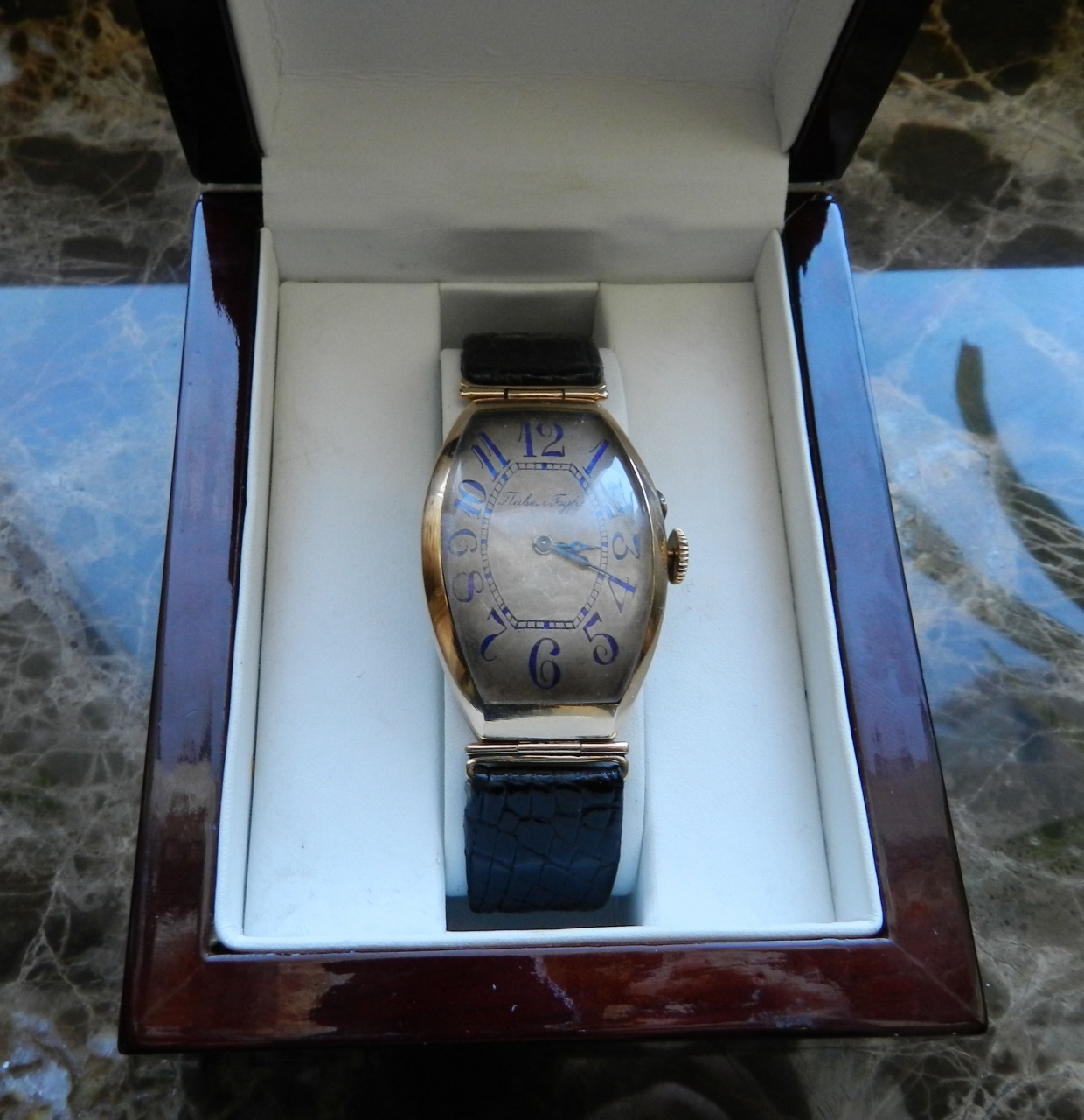 Золотые часы Павел Буре на ходу, обслужены в конце февраля - самазаны и т.д. Ремешок крокодиловый Hirsc croco, застека золотая 585. Циферблат серебряный с голубой эмалью. Стекло пластик. В комплекте с современным деревянным футляром.