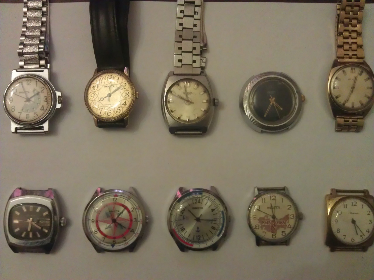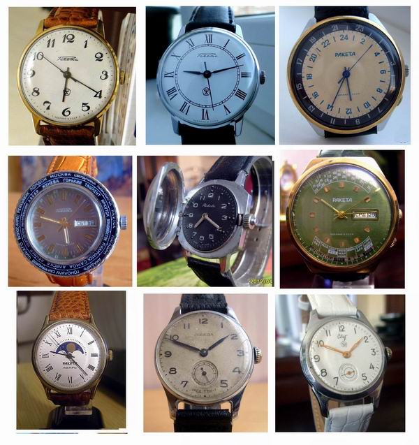 56шт.: Maurice Lacroix, Epos, Bulova, Seiko, Orient (3), Citizen, Armani, Океан, Авиатор, Полет (3), Родина, Спутник, Урал, Восток (6), Ракета (13), Слава (4), Чайка (3), ЗиМ, Победа, Заря (2), Луч, Дружба, Молния и тд... Два года скромного хобби
