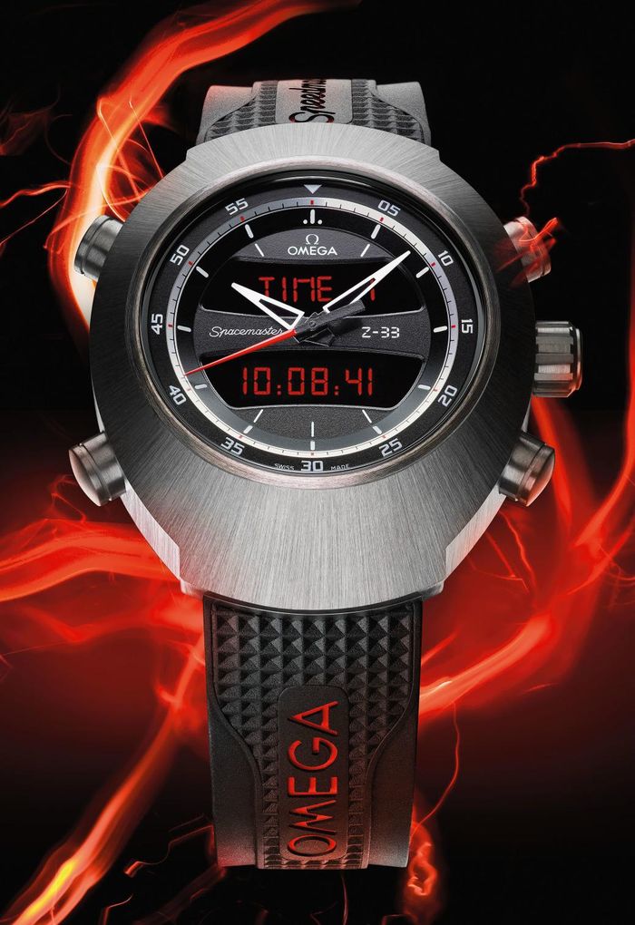 Не прошло и пяти минут с момента презентации часов Omega Spacemaster Z-33 как они стали хитом всех гаджетоманских ресурсов планеты. Модель оборудована новым кварцевым калибром 5666, который создавался для удовлетворения нужд пилотов. Функции: дата, всемирное координированное время (UTC), два часовых пояса (на 12 или 24-часовом дисплее), будильник, вечный календарь, хронограф, таймер обратного отсчета. Кроме того, часы позволяют вести до десяти бортовых журналов. Яркость двух экранов регулируется автоматически, в зависимости от освещенности. Корпус сделан из титана, ремешок каучуковый.