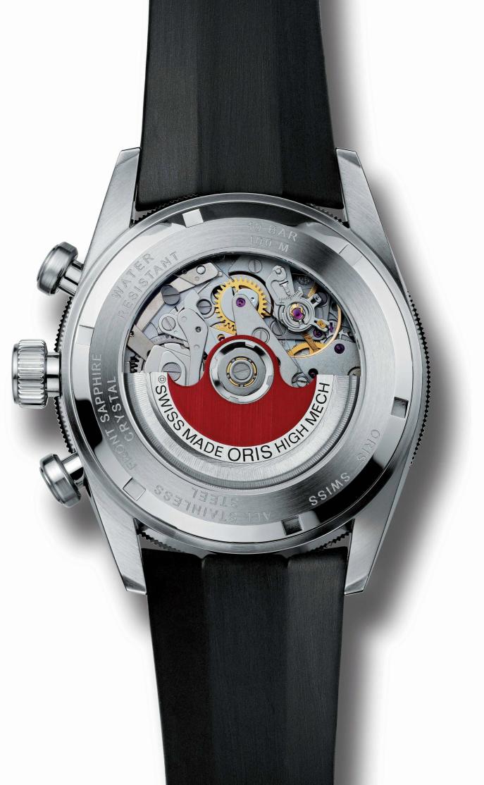 Модель оснащена швейцарским автоматическим механизмом ETA Valjoux 7750, с функциями индикации часов, минут (посредством соответствующих центральных стрелок), секунд (на линейном секундном индикаторе, разработаном специалистами Oris, и похожем на указатель на приборной модели гоночного автомобиля, на 9 часах), даты (в апертуре на 6 часах), а также с хронографом (центральная секундная стрелка, 30-минутный счетчик на 12 часах, 12-часовый счетчик на 6 часах).