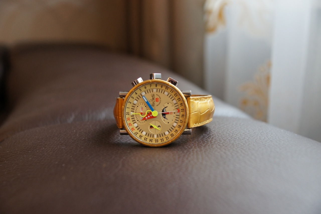 Как я и сказал, цвет у часов весьма необычный - золотистый, очень яркого и даже искристого оттенка.
