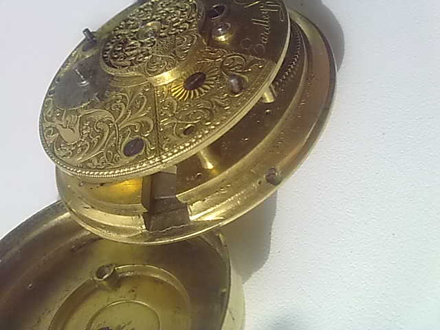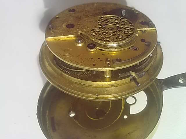 мех-зм:Unique Verge Fusee Repeater Calendar Pierced silver case watch by Eardley Nort