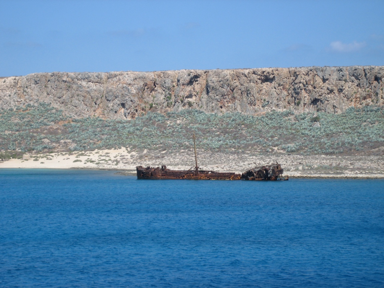 Еще одна из природных достопримечательностей. Пропилив полдня сначала на запад, практически к скалам Фамагусты, а после на юг до крайней точки Крита, мы воотчию увидели этот персиковый песок. Тут надо отметить, что за весь отдых я очередной раз насчитал около десятка разлчных оттенков моря, а песка и того больше. Так вот, песок Элафаниси мелкий, мягкий и розовый. Хотя в паре сотен метров есть красивые дюны с белоснежным песком. Эту часть Крита с остальной частью острова соединяет узкая песчаная греда, покрытая полуметровой толщей моря. Разувшись, мы ступили в эту воду. Правая часть, приходящая из моря оказалась приятно прохладной, слева же образовалась некая запруда, наполняемая время от времени набегающими волнамии нагреваемая дневным солнцем. Вода просто горячая! Туристы лежат в ней, как в ванне. Кто-то играет в волейбол, кто-то промчался на крыле мимо. Если в центре запруды относительно свободно, то по ее краям просто ковер из людей!