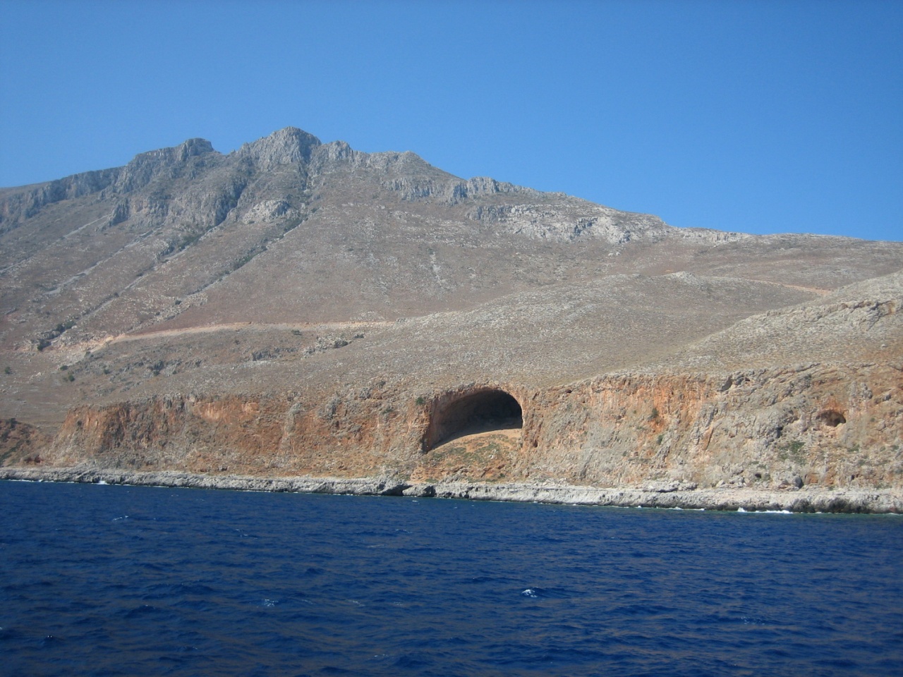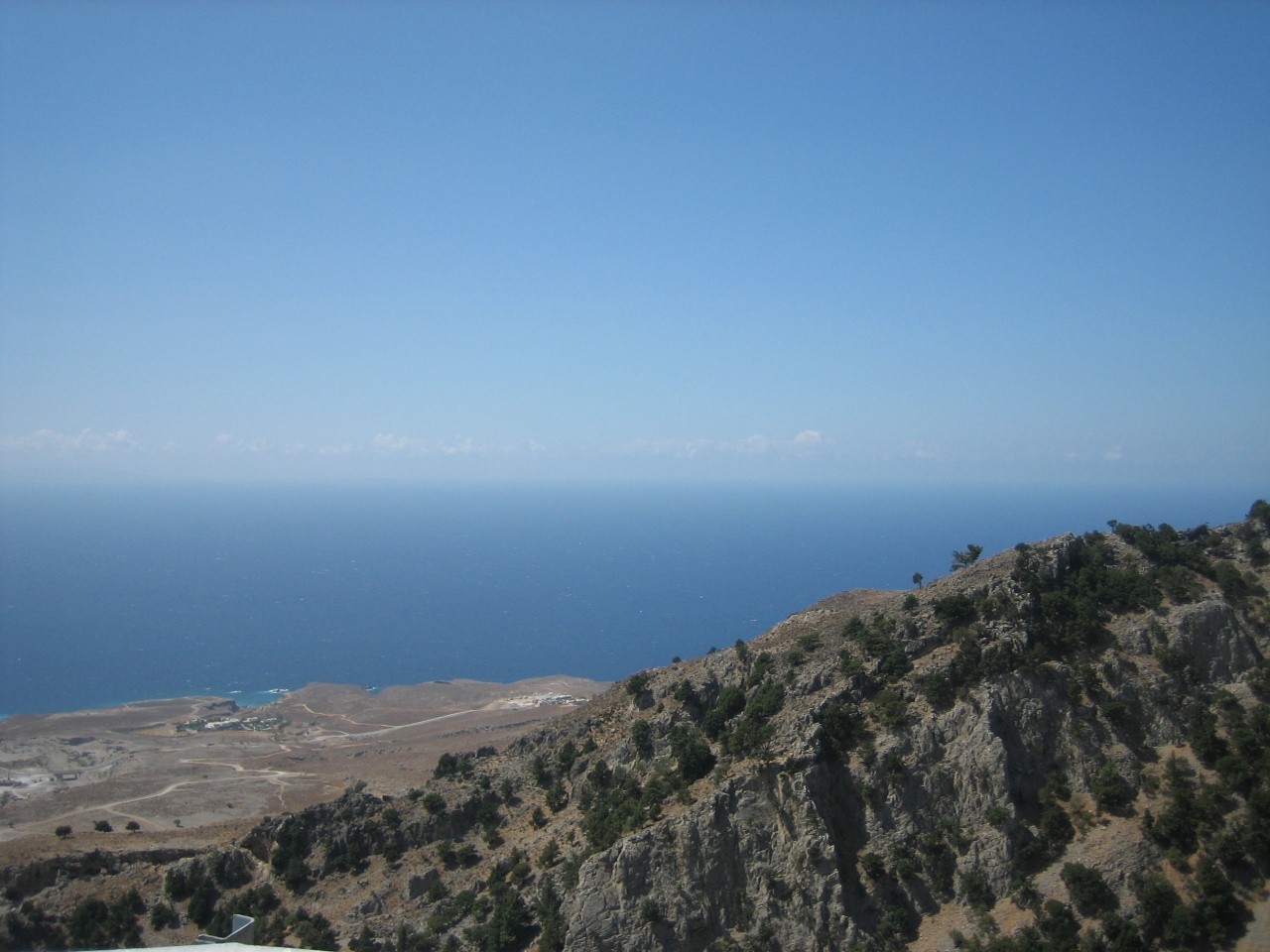 В следующий день дорога нам предстояла к пескам Элафаниси. По пути мы заехали в одну из пещер со сталактитами, которую уже очень давно облюбовали монахи. Ничего особенного, пещера как пещера. А вот вид, открывающийся при выходе из нее мне понравился: