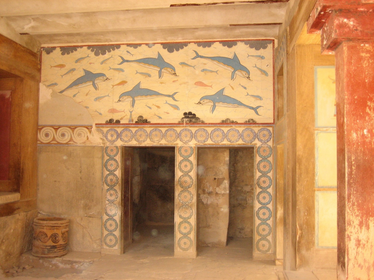 Кносский дворец, а точнее его руины, которые не смотря на все старания греков по их реставрации, представляют собой весьма жалкое зрелище. Когда-то яркие, фундаментальные постройки, величественные сооружения, сегодня это лишь груда камней, выжженых солнцем. Не могу сказать, что зря съездили, но и впечатлений не много.