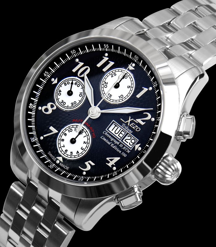Новые в заводских плёнках и в полном комплекте швейцарские XEZO Tribune Chronograph, DAY/DATE.