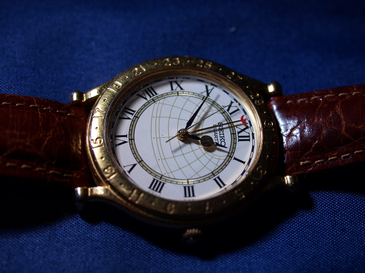 Добавим немного фотографий в более высоком качестве; кроме того, я сменил на этих часах ремешок на оригинальный новый кожаный ремешок Seiko, стоимостью в 1000 руб. в Японии; новый ремешок идет бонусом покупателю этих редких часов.