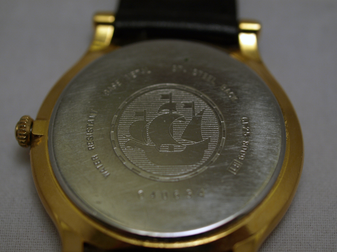 Данная модель на кварцевом механизме 6F25-8009 в хорошем состоянии. Часы выпускались во второй половине 80-х годов, корпус модели сохранил оригинальную позолоту и четко читаемую эмблему серии в виде каравеллы на задней крышке.