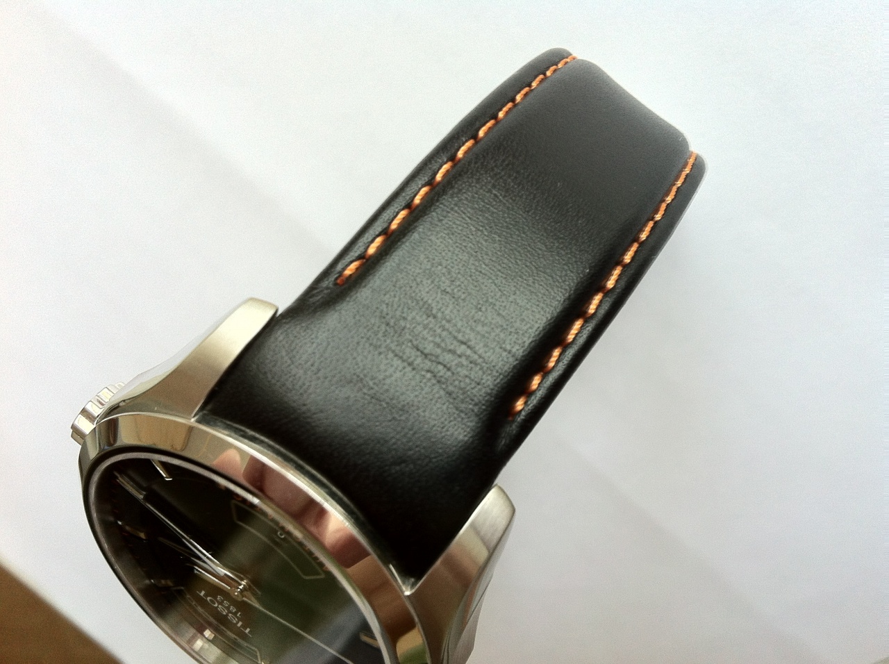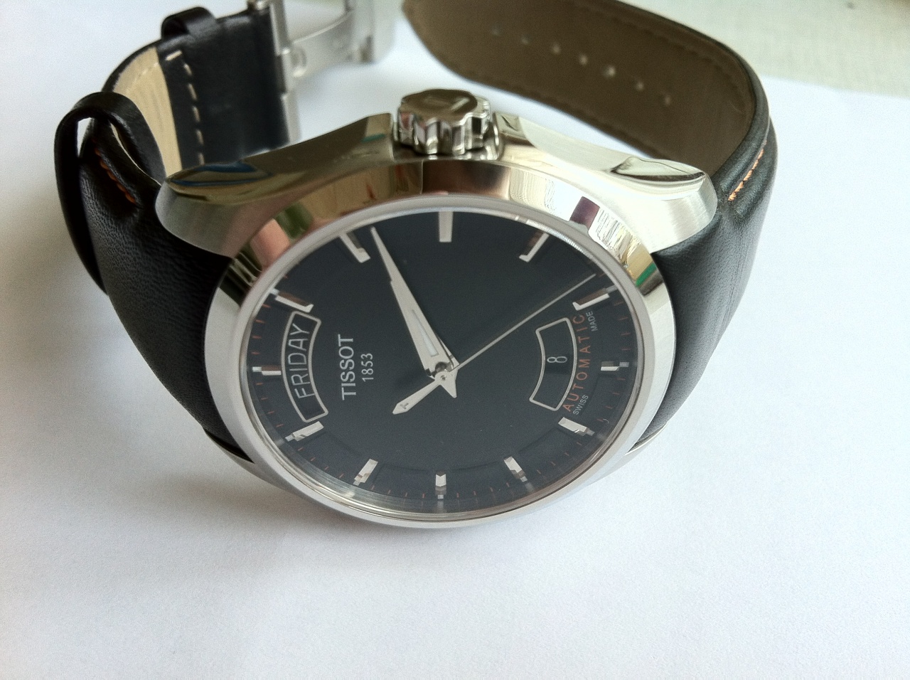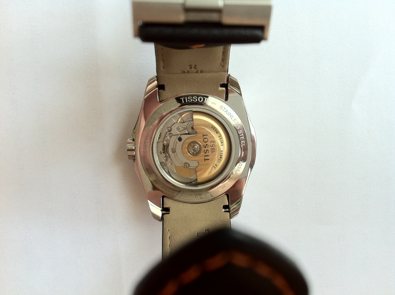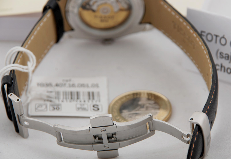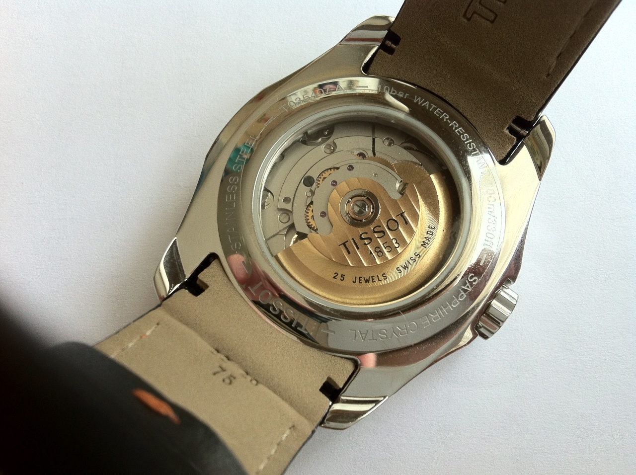 Неладное началось при проверке бирки, штрих код которой привел меня совершенно к другой модели...артикул был снят, видимо, чтоб не палится. и это все у офиц. магазина...на вопрос что это значит - ничего страшного, это ведь такая ерунда, перепутали нечаянно, если так нужно вышлем бирку от тех самых часов. Начал лазить в инете выяснять все мелочи, появились сомнения по-поводу надписей на обороте и ремешке - видел и 10 bar water resistant...(как у меня) и просто water resistant... без 10 bar. ремешок...тут вообще массу вариаций нашел, какие настоящие и с чем сравнивать Бог его знает. на одних есть цифры с размерами с обеих сторон, у других только с одной, у третьих вообще их нет, у четвертых еще и код какойто горизонтальный там где дырочки от ремешка, у пятых вырезов в месте крепления нет, у шестых надпись тиссо 1853 начинается у начала строчки, как у меня, у шестых посреди дужки...потом заметил, что у моих фактура и твердость кожи дужек ремешка несколько отличается, на фото видно. а, еще они идут ровно 22 часа вместо 42((((механизм вроде бы подлинный - есть значок и номер.