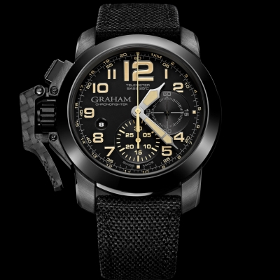 Марка Graham выпустила четыре новые версии хронографа Chronofighter Oversize. Узнаваемая особенность Graham – рычажок для запуска хронографа на этот раз выполнен из карбона. Дополняет дизайн 47-миллиметрового стального корпуса с черным PVD-покрытием черный керамический безель. Часы оснащены автоматическим калибром G1747 с 48-часовым запасом хода. Кроме счетчиков хронографа на циферблате разместилось окошко даты в положении «8 часов». Сапфировое стекло защищает часы не только спереди, но и сзади.