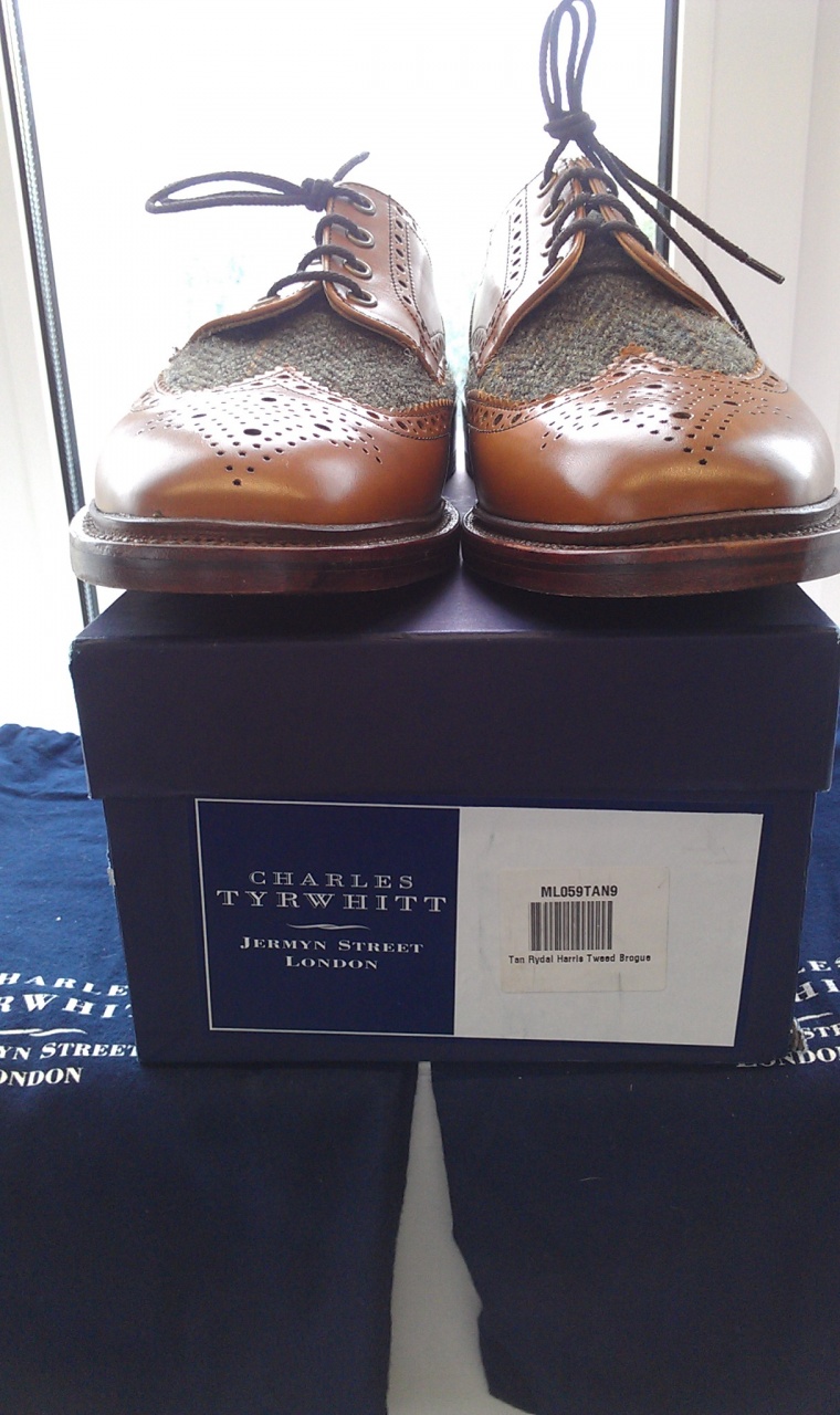 Абсолютно новые, необычные броги из кожи теленка, комбинированной с английским твидом!