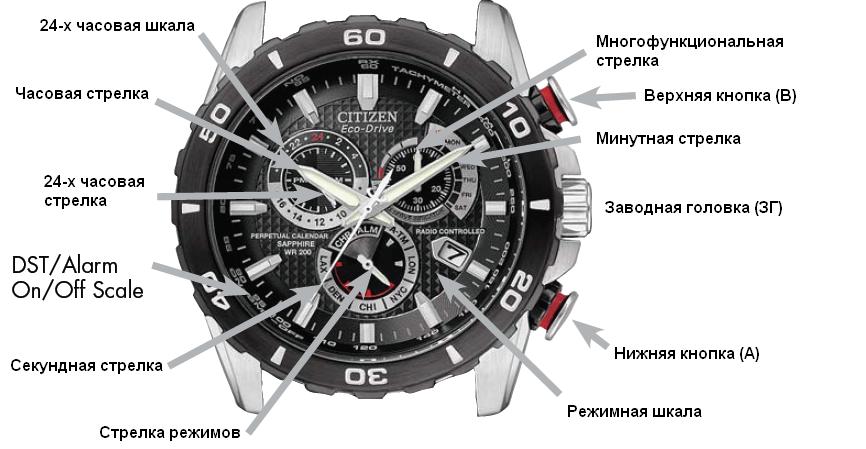Кнопки и положения заводной головки (ЗГ)