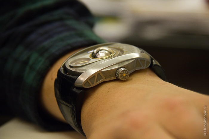 Главная новинка сегодня – это Quartime. История такая: на циферблате модели есть всего шесть часовых индексов-апертур. Каждые 6 часов вместе с указателем утро/вечер, день/ночь в апертурах сменяются индексы. Вместо отметок 6,7,8,9,10,11 в апертурах появляются отметки 12,1,2,3,4,5. Также к следующему «базелю» планирую представить несколько сумасшедших концептов. Ждите.