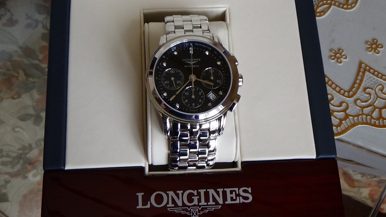 Немного поделюсь впечатлениями. Волнительная неделя ожидания и вот я уже счастливый обладатель хронографа Longines Les Grandes Classiques Flagship (L4.803.4.57.6). При первом взгляде на них сразу отметил для себя, что те немногочисленные фотографии их в Сети в крайне незначительной степени способны передать всю красоту, изящество, качество и тонкость исполнения этих часов, что впоследствии было по достоинству оценено друзьями и коллегами. Серебристые стрелки, надписи, и тонкие окантовки шкал накопителей хронографа и апертуры, а также "каменные" метки - всё это очень органично сочетается с контрастным черным циферблатом. Причем, насколько черным может быть черный цвет, я понял когда положил их рядом с другими своими часами тоже с черным циферблатом)). Шкалы накопителей тоже имеют свой еле различимый оттенок черного и микроузор, видимый только при хорошем увеличении. Шкала тахиметра практически незаметна и совсем не загромождает циферблат, но она есть и когда нужно и кому нужно ей всегда можно не напрягаясь воспользоваться. Одним словом, эргономика на высоте, внимание уделено каждой мелочи и каждая эта мелочь приятно радует и удивляет, а часы полностью соответствуют моим ожиданиям и пожеланиям при выборе часов с элегантным классическим дизайном. К сожалению, нет фотоаппарата, чтобы свои впечатления хоть как-то задокументировать. За месяц использования точность хода составила +4 сек./сутки.