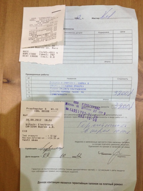 В сентябре 2012 был проведен репассаж в клоксервисе (документ в наличии).