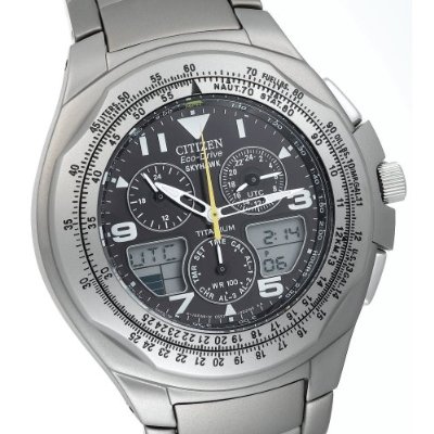 Часы Citizen EcoDrive Skyhawk, таймером и режимом мирового времени. Цифроаналоговый хронограф. Калибр C650. • Центральная секундная стрелка. • Суточный 24-часовой индикатор (положение 10ч). • Индикатор времени по Гринвичу (положение 2ч). • Время и дата в 29 основных городах мира с возможностью дополнения таблицы городов пользователем. • Отображение летнего времени. • Полностью автоматизированный календарь. • 3 ежедневных будильника. • Секундомер с точностью показаний 1/100 сек и максимальным временем измерения - 24 часа. • Режимы ADD - измерение времени с перерывом и SPLIT (сплит-хронограф) - промежуточный финиш и автоматический пересчет разности значений. • Индикатор состояния батареи. • Уникальная система подзарядки использующая энергию солнечного света Eco-Drive: полностью заряженный аккумулятор обеспечивает 4-х летний запас хода в режиме Power Save. Предусмотрена функция отображения уровня заряда аккумулятора, предупреждения о низком уровне заряда и принудительного перевода в режим экономного питания при разрядке. • Задняя крышка с выгравированным логотипом Citizen и серийным номером. • Выпуклое минеральное стекло устойчивое к возникновению царапин. • Светонакопительный состав на стрелках и маркерах часа. • Поворотный безель с нанесенной методом гравировки (стойкой к истиранию) логарифмической шкалой. • Надежный ТИНАНОВЫЙ корпус и браслет. Замок с тройным сгибом и дополнительным фиксатором.