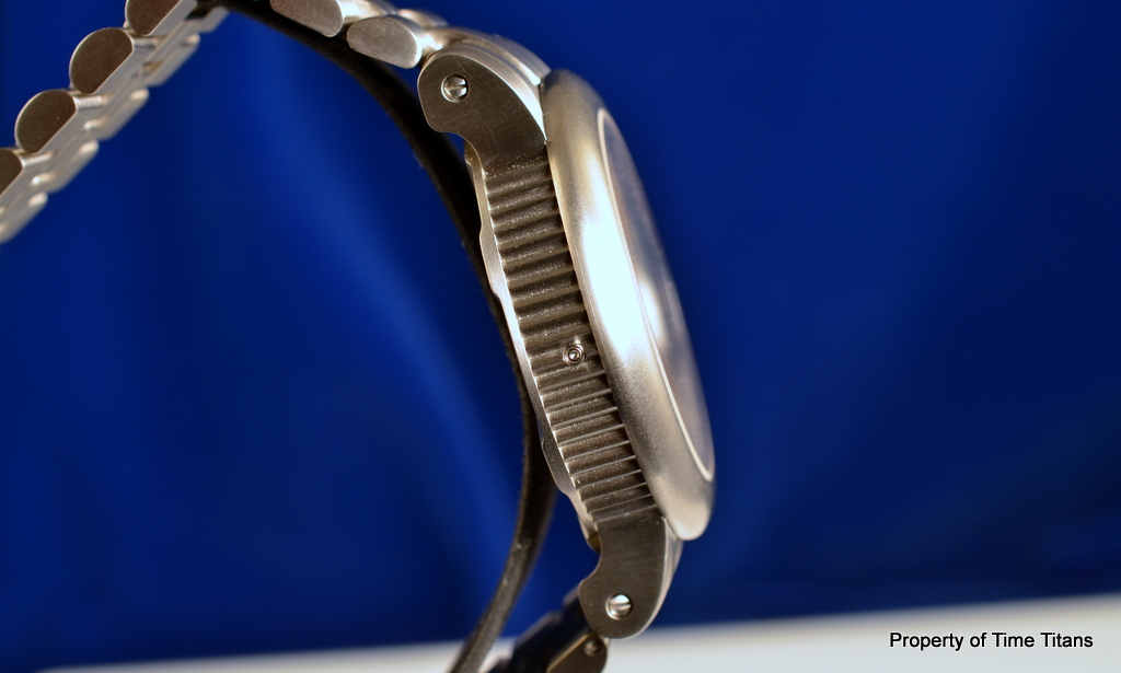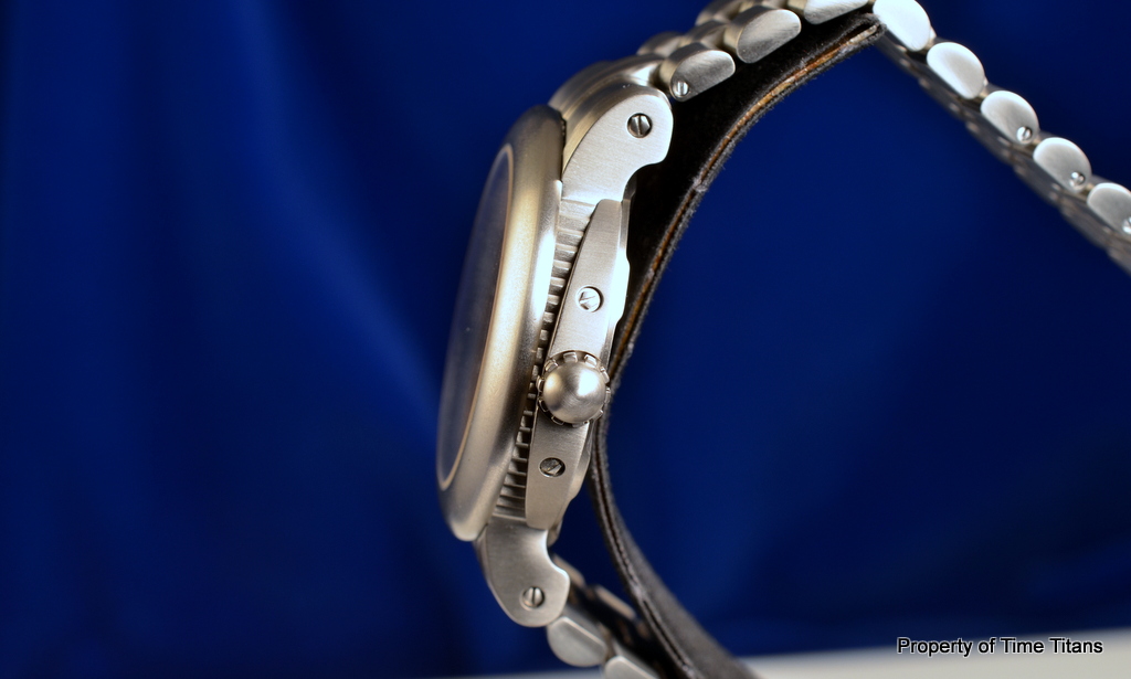1. Часы, диаметром 45мм на титановом браслете. Часы выглядят очень массивно, но при этом на руке ощущаются невероятно легко.