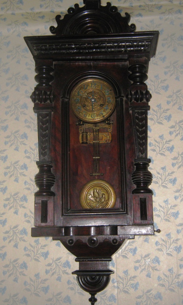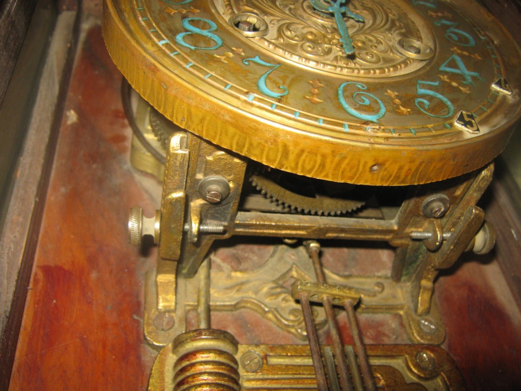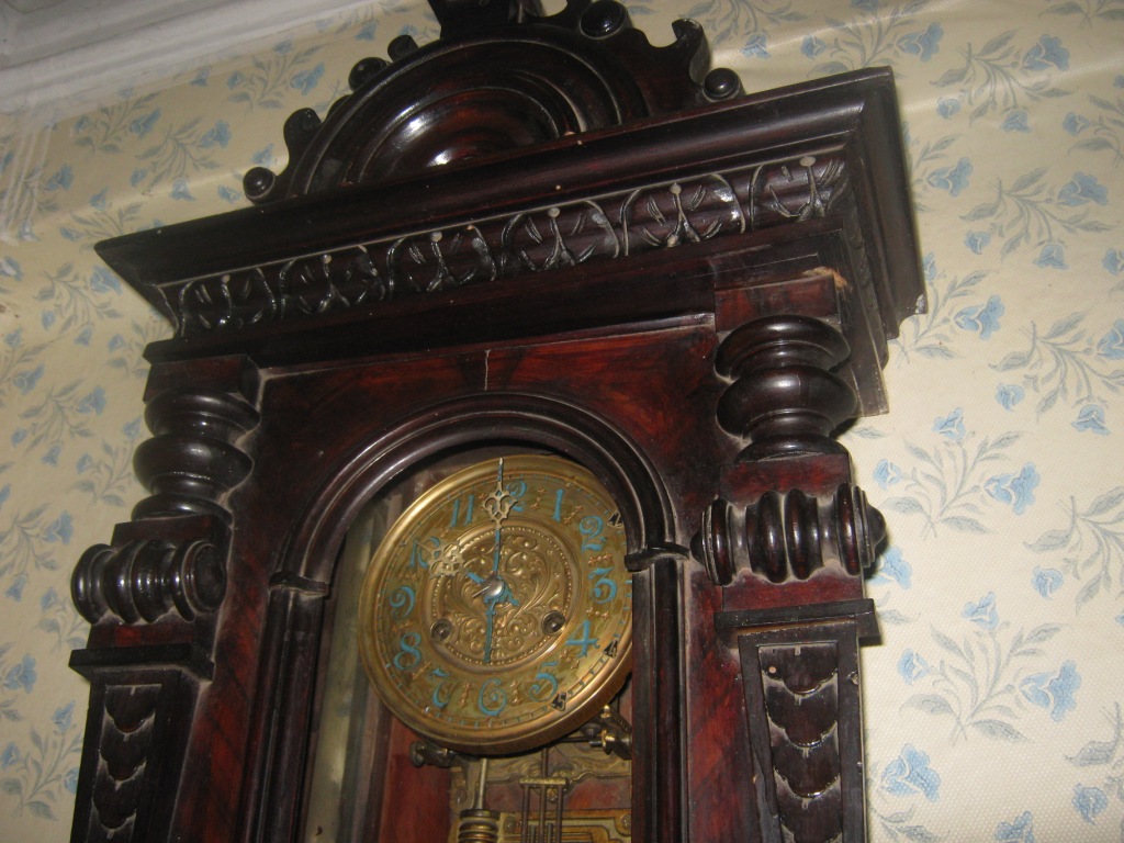 собираюсь приобрести такие часы, дал задаток. Хозяин утверждает, что назывались они что то вроде "Хохе". Поиском нигде этого названия не нашел. По гонгу определил что гонг фирмы PHS. а механизм-? Очень красивый латунный (медный?) циферблат и маятник. Хозяин утверждает, что цифры светились ночью. Стекло он разбил при снятии со стены, хотя и утверждает, что стекло было простое, не рифленное, и не тонированное. Так ли это? Весь вечер пытался на Молотке найти что то подобное, циферблаты примерно похожие есть у Густав Беккер, маятника и корпуса такого не нашел. На механизме, кроме цифр 42/105 и справа 25608 ничего не нашел. Причем последняя 8-ка явно стоит через пробел и как бы другим шрифтом. По моему на механизме что то отсутствует или сломано. Стиль исполнения корпуса раннее не встречал. И не понятно, зачем возле основных цифр еще и стоят маленькие цифры дулирующие основные. На 2,4 и 5. Остальные видимо утеряны. Для красоты? Помогите пожалуйста определить фирму, год выпуска и ценность часов. С ув. Александр.