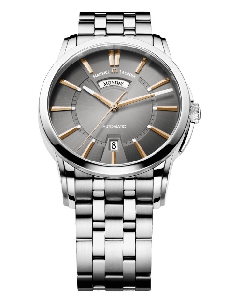 Дизайн корпуса Maurice Lacroix Pontos Day/Date диаметром 40 мм подчеркнут контрастной отделкой. Чередуясь, полированные поверхности отражают свет, в то время как сатинированные его притягивают. Все здесь подчинено идее классической утонченности, в том числе калибр ML143, получивший признание за свою функциональность и свою надежность.