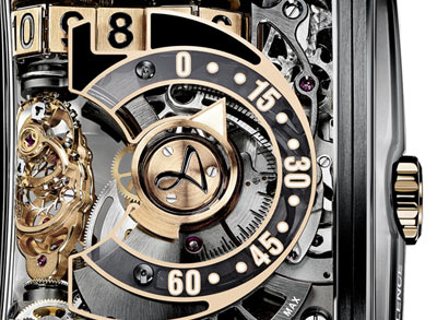 Модель оснащена инновационным мануфактурным механизмом, защищенным тремя патентами, с прыгающим цифровым указателем часов с использованием двенадцатизвенной цепи, которая приводится в действие запатентованным механизмом шатуна. Последний управляет вращением путем ускорения и замедления, что обеспечивает точный ход часов. Для регулирования скорости использованы инновационные механизмы, в частности, инерциальная система трения, вращающаяся на 360° система управления, специальный барабан для обеспечения этого усложнения энергией. Самым примечательным является то, что система спускового механизма, в том числе платина, мосты и колеса, перемещается на новое место при каждом часовом прыжке, делая четыре полных оборота каждый день. Таким образом, с тем, чтобы предотвратить негативное влияние гравитации на точность хода часов, Hautlence использовал перемещение всего механизма. Калибр длиной 37,8 мм, шириной 33,2 мм, толщиной 12,35 мм, состоит из 552 деталей, на 92 камнях, с балансовой частотой 18000 полуколебаний в час (2,5 гц), с двумя заводными барабанами, 45-часовым запасом хода, с функциями индикации часов, минут и запаса хода (ретроградный указатель на 6 часах). При его изготовлении использовались, в частности, технологии многоосевой микрообработки и фотолитографии.