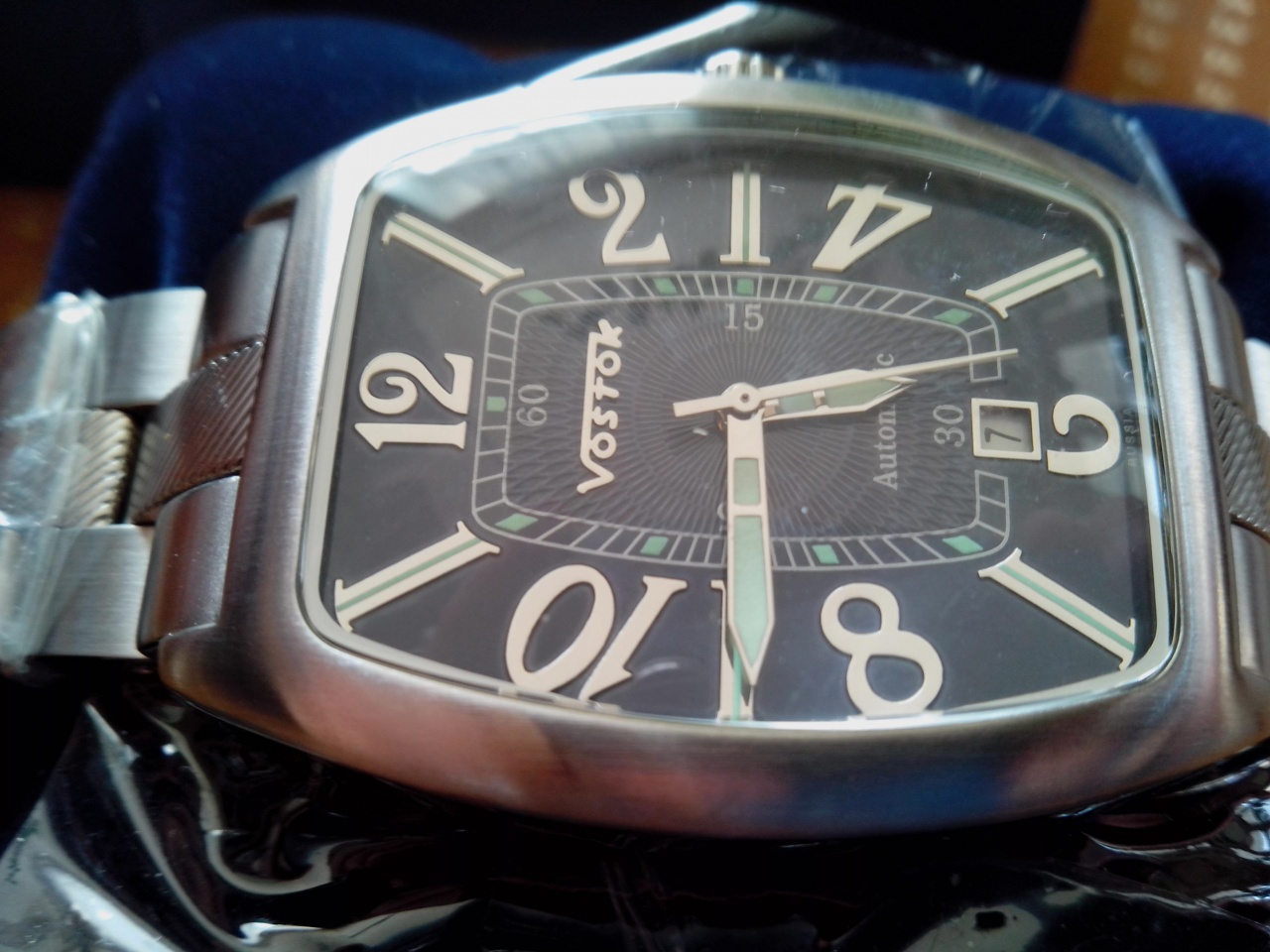 Информативно цифер не перегружен под 12 часовой меткой надпись метализированными буквами на латинице Vostok, над 6 часовой меткой automatic- лаконично, без усложнений.