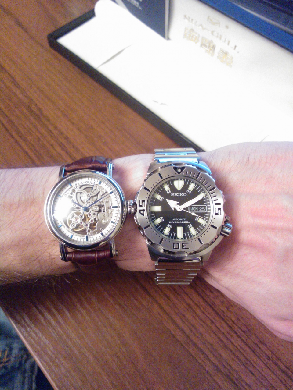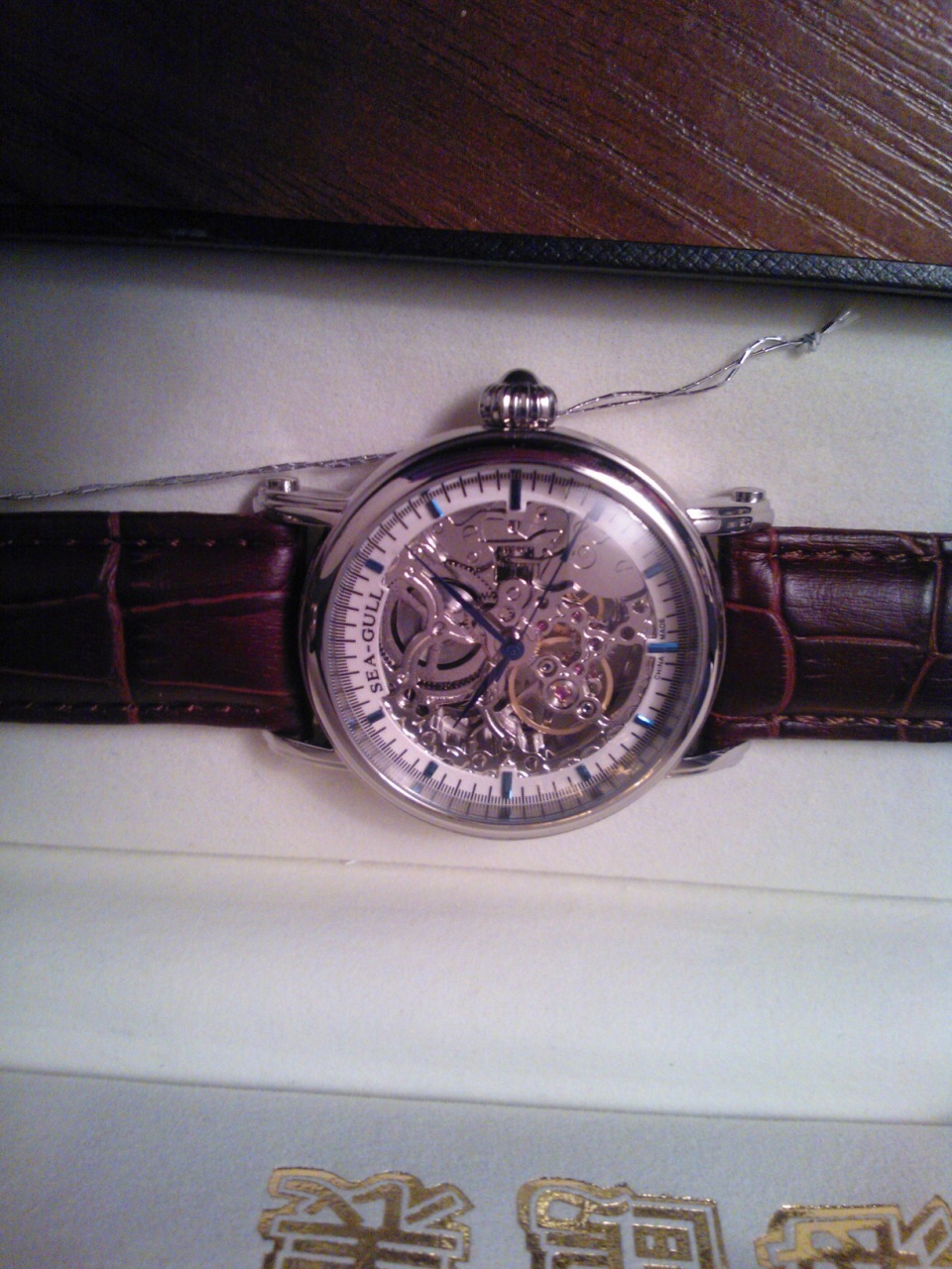 Забрел я как то в раздел часы других стран и почерпнул для себя, что качественный китай вроде как имеет место быть и в производстве часов. Подумал, что надо будет как нибудь с целью ознакомления заказать часы из поднебесной (опять же появится повод по полемизировать на тему совершенства часового искусства с толпами носителей Тиссо). А тут как то супруга моя тычет пальчиком в журнал и говорит во смотри часы красивые, а то ты мне че-то все время одинаковые показываешь и спрашиваешь красивые или нет вот эти красивые. А показывает она мне на некий фэшн явно китайского происхождения но в исполнении скелетон, и тут я вспоминаю что видел у Sea-gull что-то приятного вида по еще более приятной цене. Вообщем показал ей часы получил утвердительный ответ и заказал Sea-gull m182sk, так сказать и любопытство своё удовлетворить и благоверной украшение организовать.
