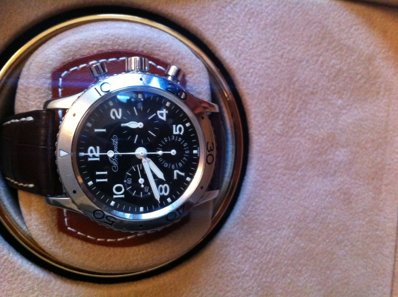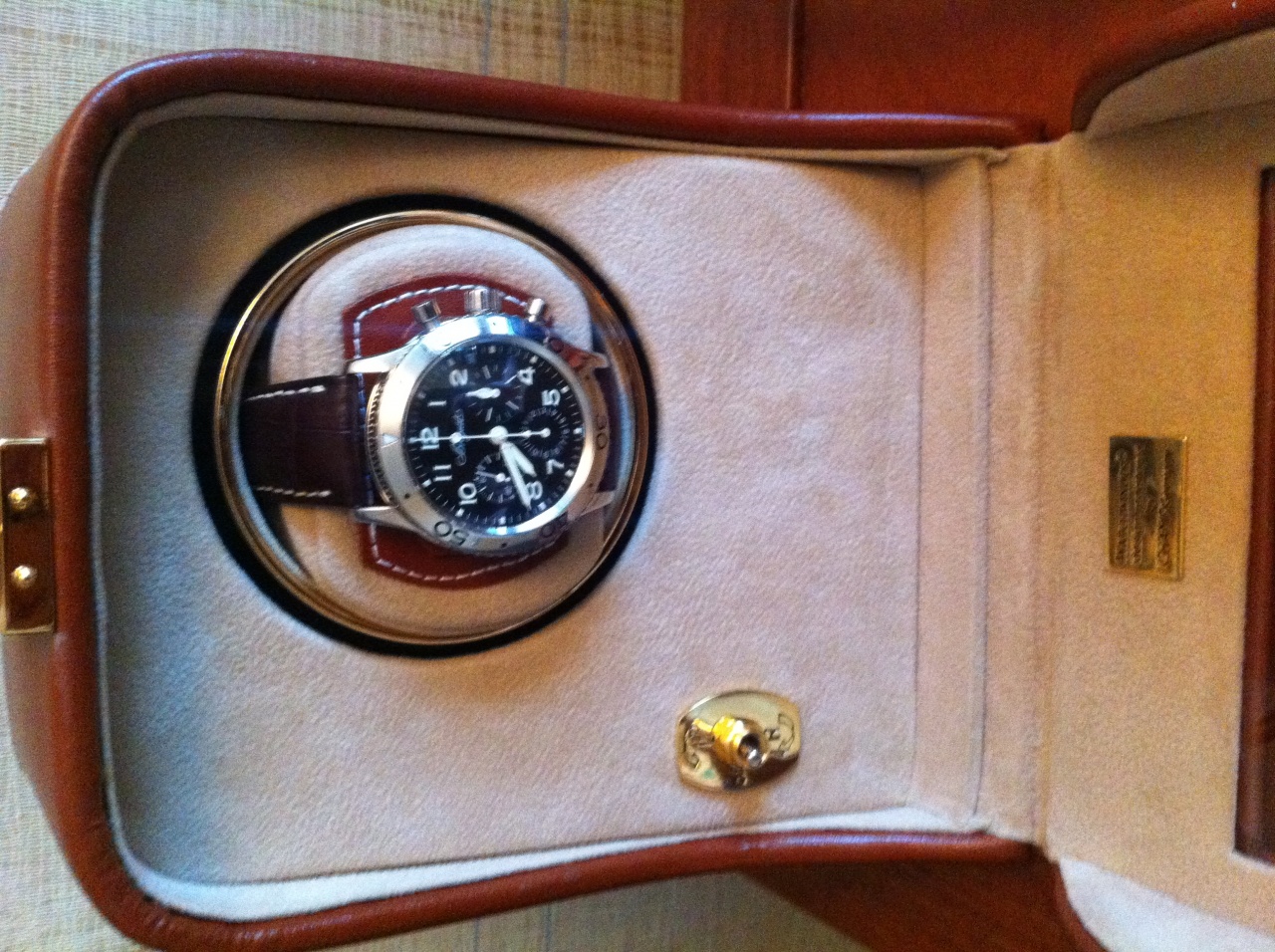 Часы ждут нового владельца в виндере и на новом коричневом оригинальном крокодиле