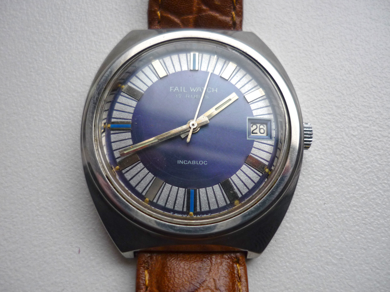 Вот недавно свезло, так свезло. Выменял у деда на наган, в смысле, нашел за гаражами, ну, в общем, по случаю достались мне такие приятные часы. Название, конечно, подкачало, но, надеюсь, стояла когда-то такая фирма на швейцарских холмах.