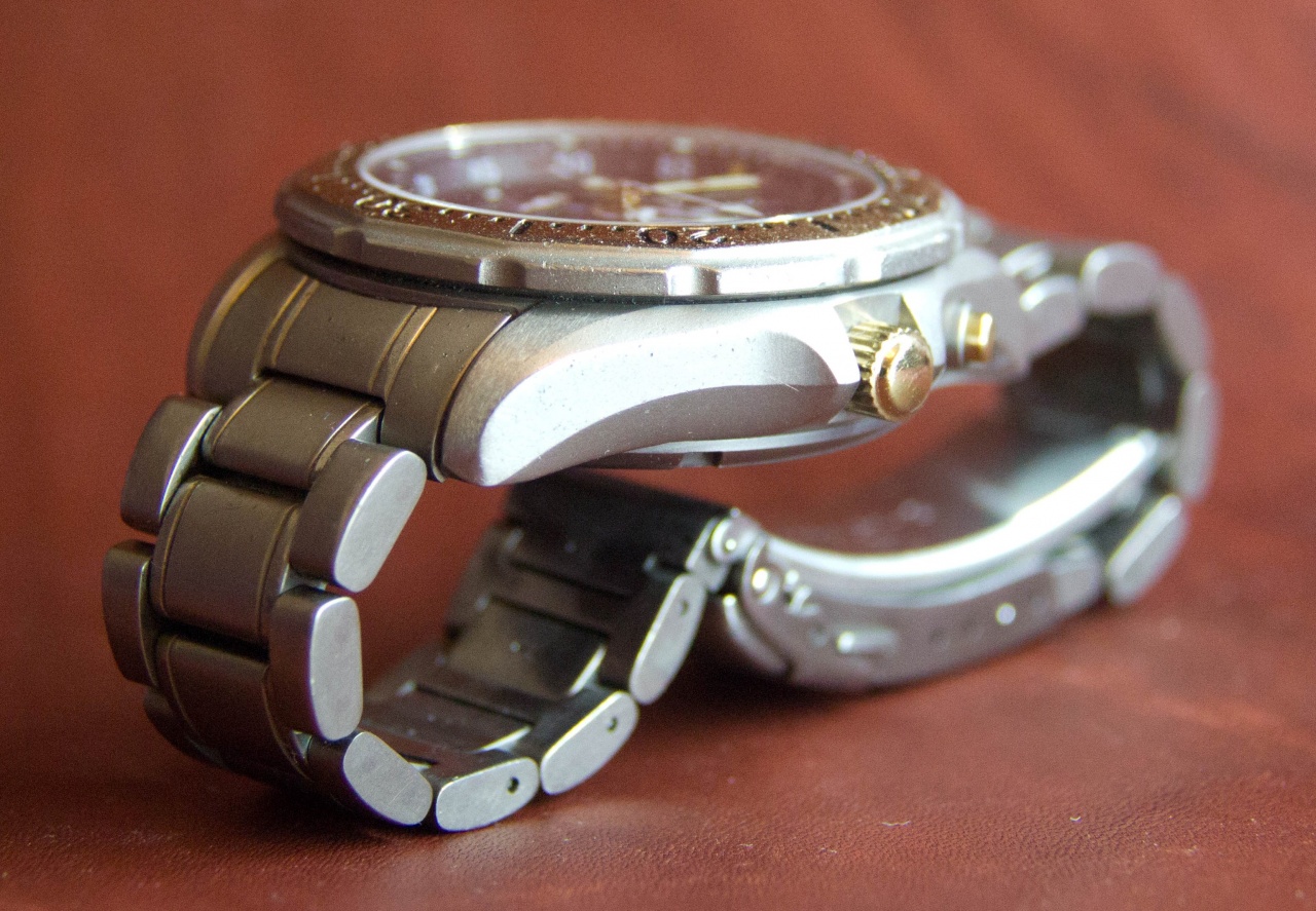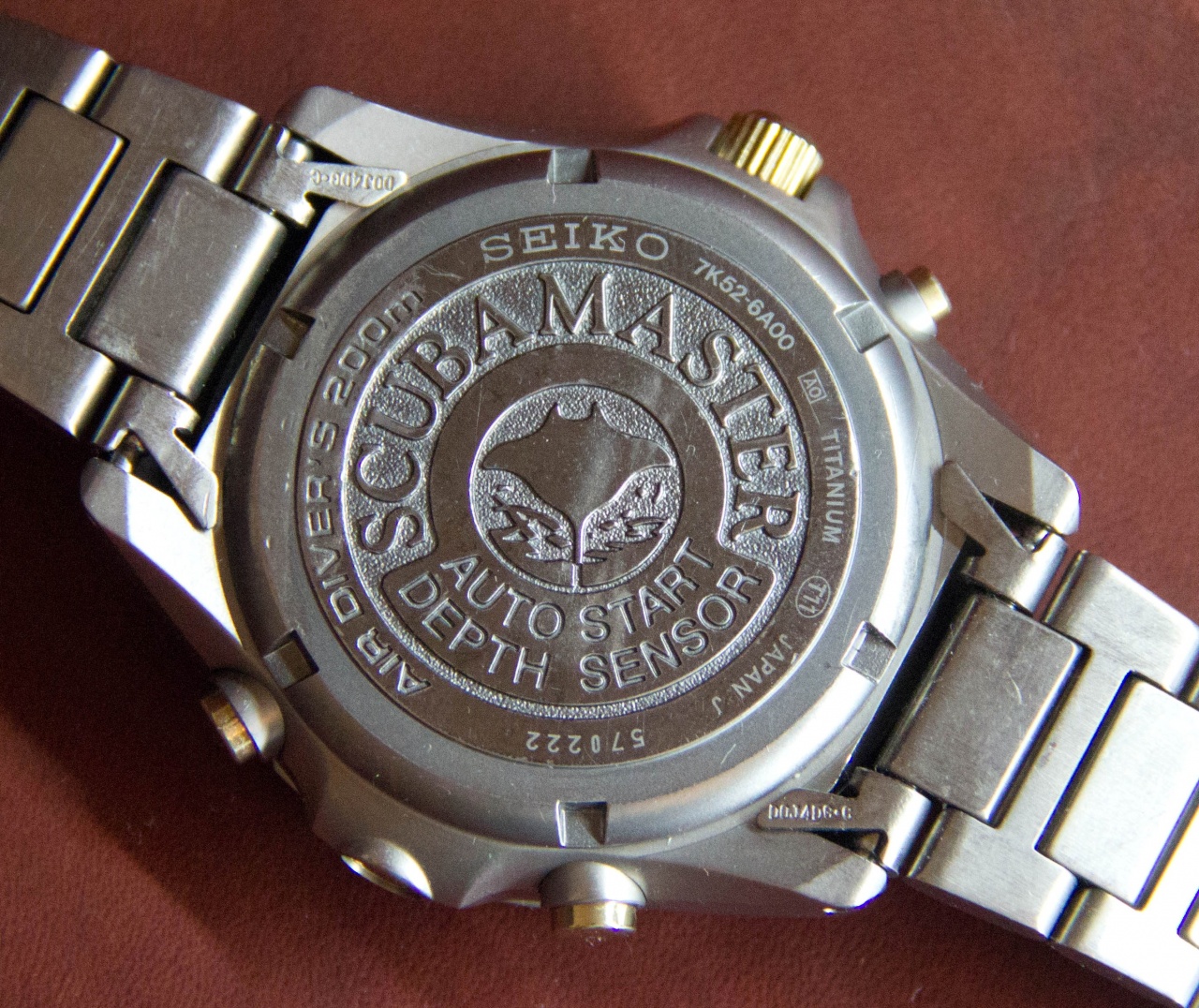 Часы очень интересные. Корпус часов выполнен из титана в биколоре. Золотом покрыт верх безеля, заводная головка и кнопки. Золото на этих часах смотрится очень уместно. Часы по моим прикидкам были выпущены в 1995 году.