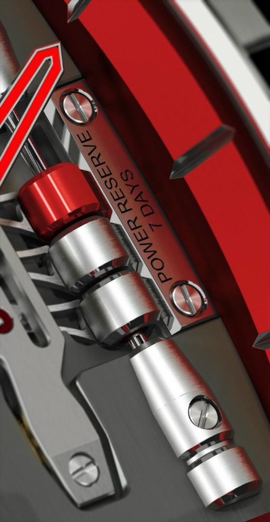Модель оснащена мануфактурным швейцарским механизмом с ручным заводом Cyrus 7778 (кстати, цифры 7778 выгравированы на калибре и они означают годы рождения кузенов Julien и Laurent Lecamp, основателей Cyrus), созданный в сотрудничестве с Jean-François Mojon, состоящим из 290 деталей, на 50 камнях, с балансовой частотой 21600 полуколебаний в час (3 гц), семидневным запасом хода, функциями индикации часов, минут (посредством соответствующих скелетонизированных центральных стрелок с красными указателями), секунд (посредством соответствующего указателя с тремя красными стрелками, каждая из который последовательно отсчитывает по двадцать секунд, расположенного между 7 и 8 часами) и запаса хода (посредством соответствующего указателя, продольно расположенного между 2 и 4 часами, с тремя бочонками, первые два из которых обозначают по два дня запаса хода, а третий, красного цвета - три дня).