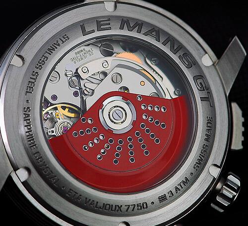 Модель оснащена швейцарским автоматическим механизмом ETA Valjoux 7750, на 25 камнях, с балансовой частотой 28800 полуколебаний в час (4 гц), с перфорированным ротором автоподзавода красного цвета, 40-часовым запасом хода, с функциями индикации часов, минут (посредством соответствующих центральных стрелок), секунд (на малом боковом циферблате, расположенном на 9 часах, посредством вращающегося круглого красного круга с отверстием, сквозь которое просматриваются соответствующие секундные метки), даты (посредством цифрового указателя в круглой апертуре, расположенной на 6 часах), а также с хронографом (центральная секундная стрелка красного цвета, 30-минутный счетчик, расположенный на 12 часах и 12-часовый счетчик, расположенный на 6 часах).