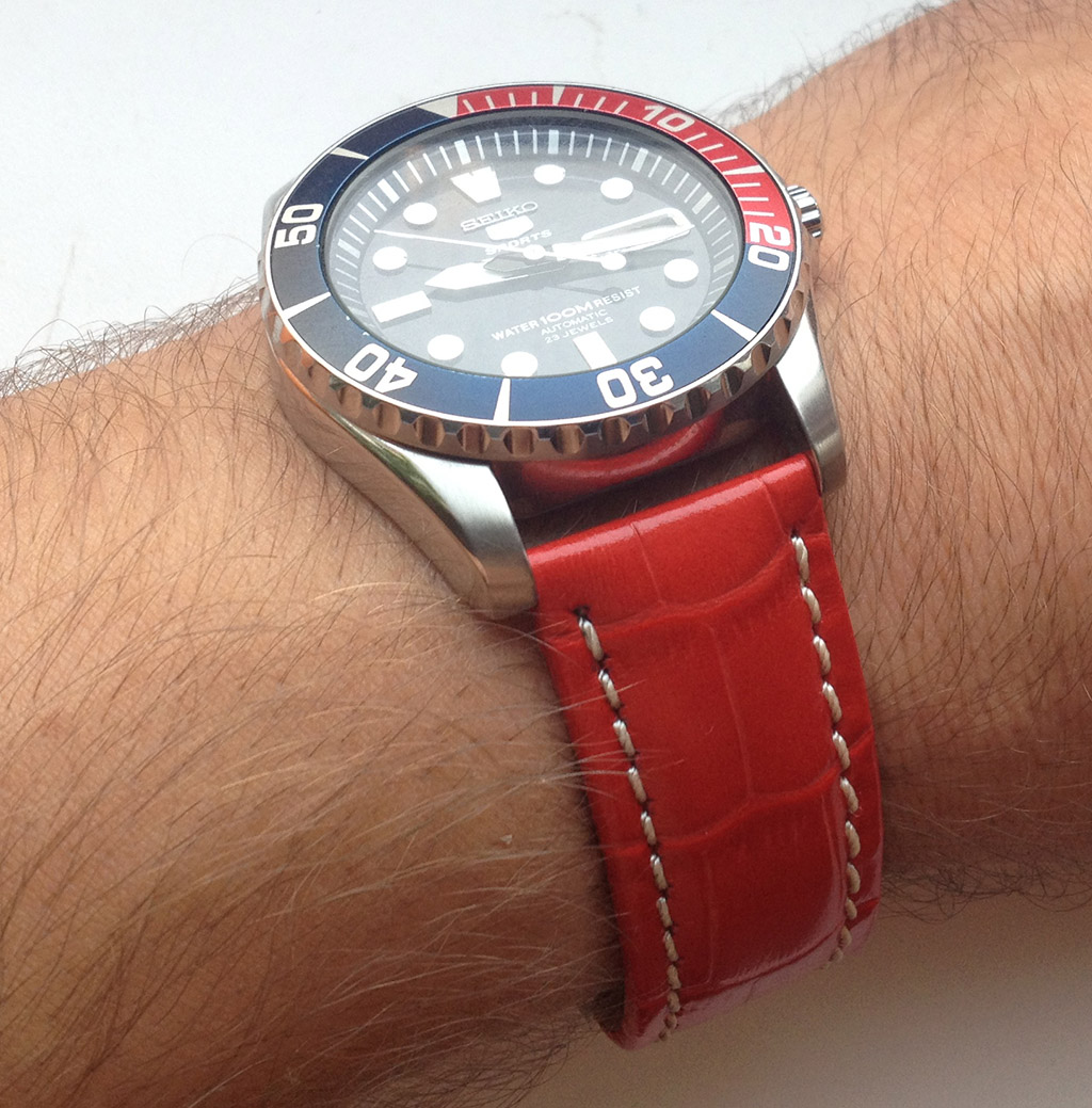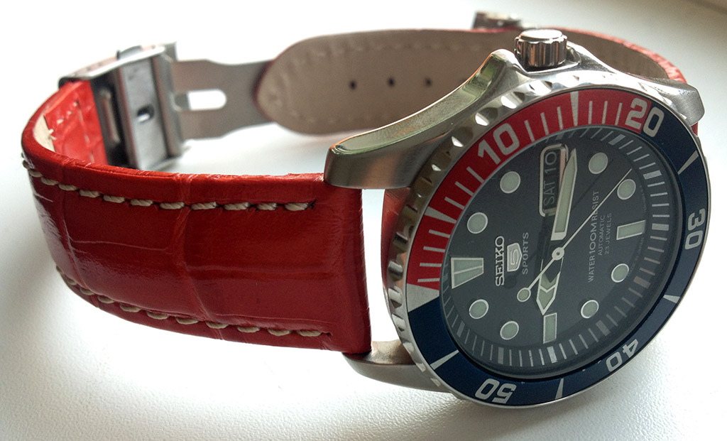 к моему SEIKO 5 Submariner SNZF15 SNZF15J2 Japan Made я уже прикупил красный ремешок и синий ремешок (в цвет безеля)