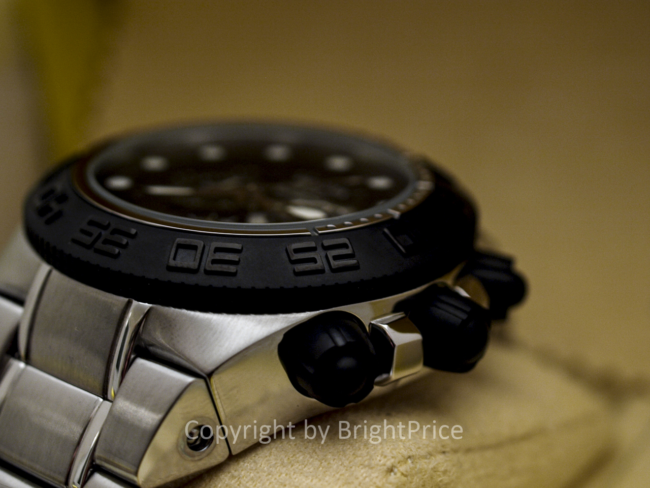 Фиксированная рамка. Черный циферблат. Люминесцентные стрелки и метки Tritnite. Минеральное закаленное стекло с антибликовым покрытием.