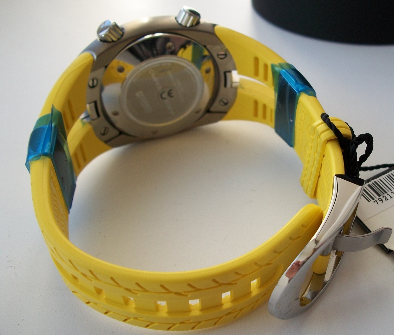 Материал браслета: натуральный каучук (желтый) со стальными вставками.