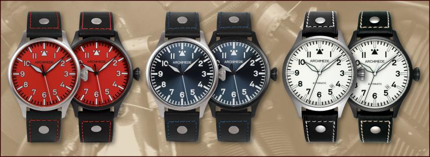 Дизайн новой модели Pilot 42 от немецкой часовой компании Archimede выполнен в классическом пилотском стиле. Она выпускается в нескольких версиях: в сатинированной нержавеющей стали, в нержавеющей стали с черным PVD-покрытием и с циферблатами красного, белого и синего цвета.