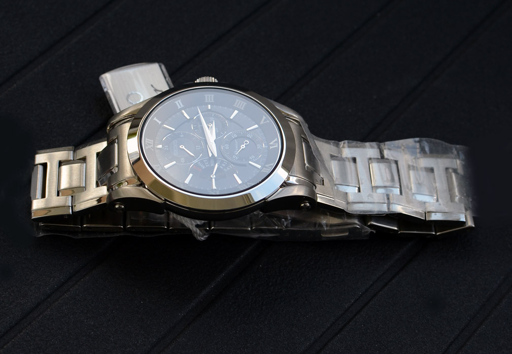 Великолепные японские кварцевые часы Seiko Premier SRL023P1 с ретроградными циферблатами дня недели, даты, суточника и секундомера • Безупречная точность кварцевого механизма 6G34 (батарея на 5 лет) • Прекрасная читаемость циферблата • Корпус из высококачественного стали 316L с полной полировкой и частичной матировкой, фигурный • Сапфировое стекло с антибликом • Отличный литой браслет из нержавеющей стали • Водозащита 10 АТМ • Абсолютно новые в плёнках!