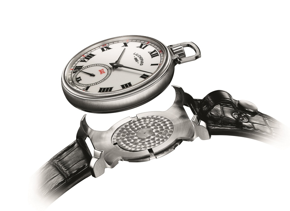 Эта модель была выпущена мастерами Chopard по случаю 150-летия марки и посвящена ее основателю Луи-Улиссу Шопару. Модель-трансформер в корпусе из белого золота диаметром 49,6 мм легко превращается в карманные часы (цепочка прилагается) или остается стильными наручными часами на ремешке из кожи аллигатора. Любопытно, что внутрь помещен калибр L.U.C EHG с ручным заводом, разработанный вместе с учениками Женевской часовой школой. Как и положено часам Chopard, модель L.U.C Louis-Ulysse – The Tribute имеет сертификат хронометра COSC и отмечена Женевским клеймом. Эмалевый циферблат выполнен в строгом стиле ар-деко с римскими цифрами и секундной разметкой «железная дорога». Всего выпущено 150 экземпляров часов.