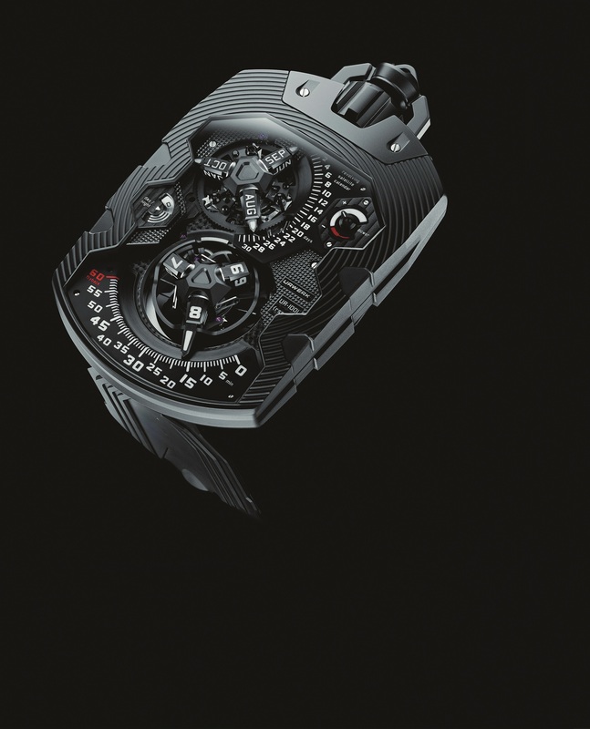 Название этой модели в переводе с англо-немецкого означает «устройство для измерения времени UR-1001». Часы обладают уникальными усложнениями, позволяющими замерить время во всей его астрономической полноте: от секунды до тысячелетия. Прибор, помещенный в корпус из массивного металла, указывает время в секундах, минутах и часах, показывает дни и ночи, месяцы, годы, особо выделяя некоторые из них, а главное – чего никогда еще не было в часовом деле – тысячелетия. При всем этом – перед нами типичный Urwerk, оснащенный сателлитным часовым индикатором парящего типа. Здесь нет верхнего несущего моста карусели и механизм опирается лишь на нижний суппорт. Ретроградная минутная стрелка закреплена на пружинном кольце по окружности сателлитного усложнения. Имеются индикаторы «день-ночь», запаса хода и замены масла: с первого по третий год цвет на индикаторе белый, а когда наступают четвертый и пятый годы, цвет сменяется на красный. По завершении техобслуживания счетчик сбрасывается на нуль. Корпус UR-1001 изготовлен из стали, обработанной сплавом AlTiN на базе алюминия и нитрида титана, а из сплава ARCAP сделаны платины, карусели, сателлиты, циферблаты, мосты, а также спиральные и U-образные ретроградные пружины. Такие часы невозможно было создать даже 10 лет назад – технологии не позволяли. В подарочном варианте хронометр Zeit Device с системой автоматического завода уложен в шкатулку из орешника, обитую буйволовой кожей. Шкатулку можно держать на письменном столе, и при этом хронометр, установленный вертикально, надежно защищен от падения, а его циферблат выставлен на всеобщее обозрение. Каждые 10–15 минут Zeit Device поворачивается на 185° и при этом слегка покачивается, что позволяет ротору взвести приводную пружину.
