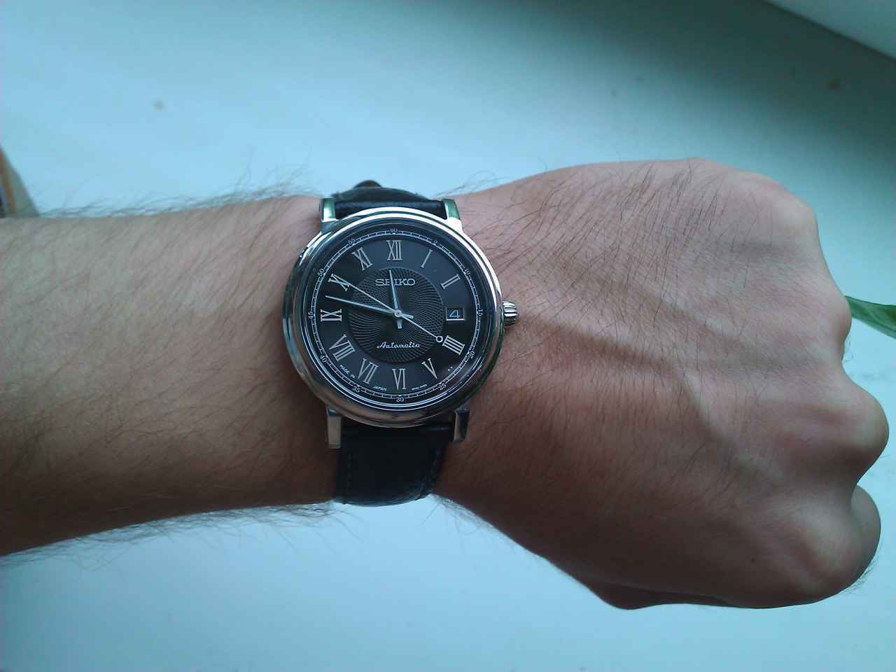 На фото моя рука диаметром 16,5 см, часы очень аккуратные (40 мм, водонепроницаемость 100 м) и отлично выглядят даже на не богатырской руке. Фотографировал с мобильного, если на корпусе видно потертости – это пыль и плохое качество фото.