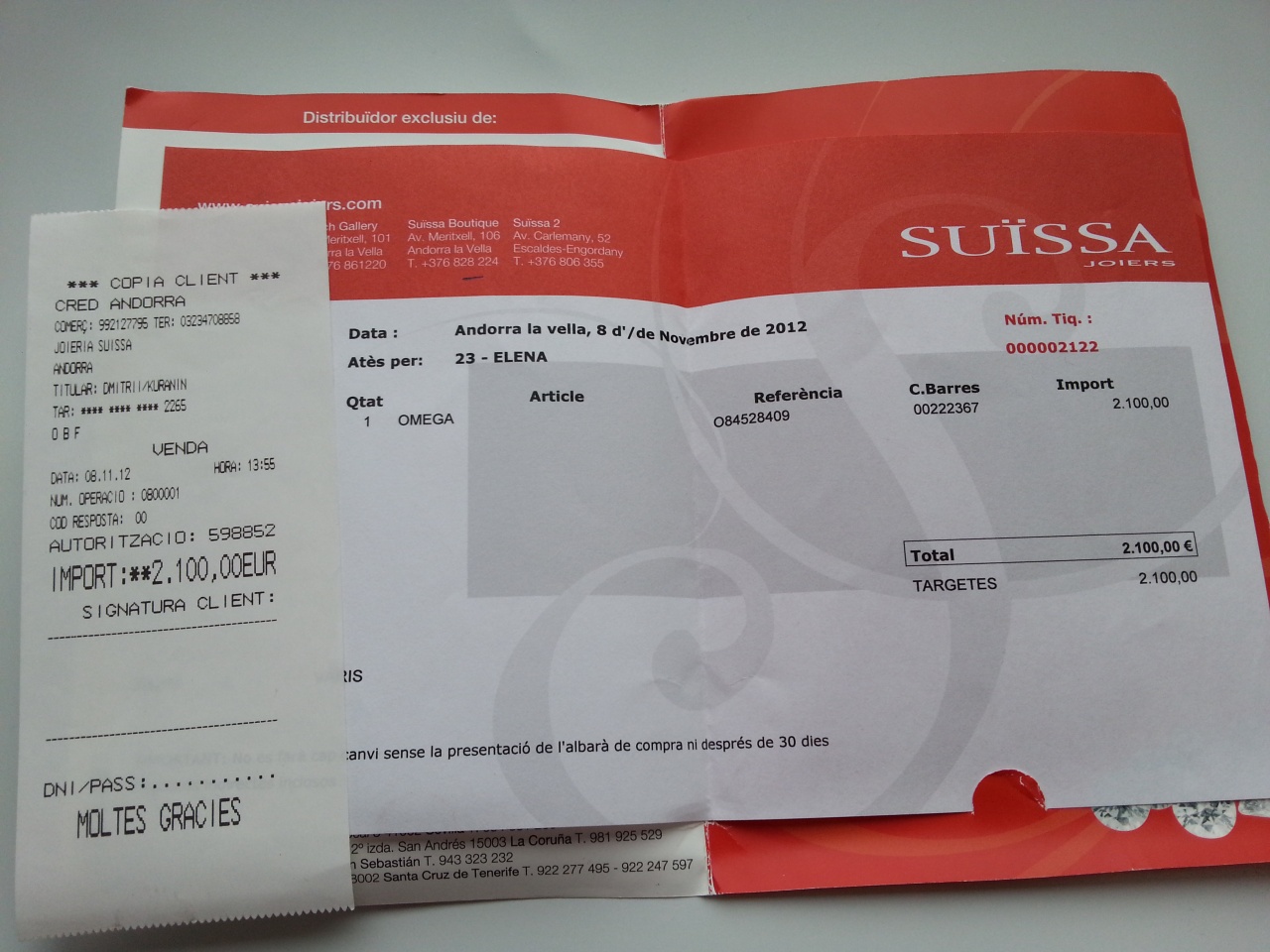 Покупались в Андорре в официальном бутике OMEGA в ноябре 2012г.