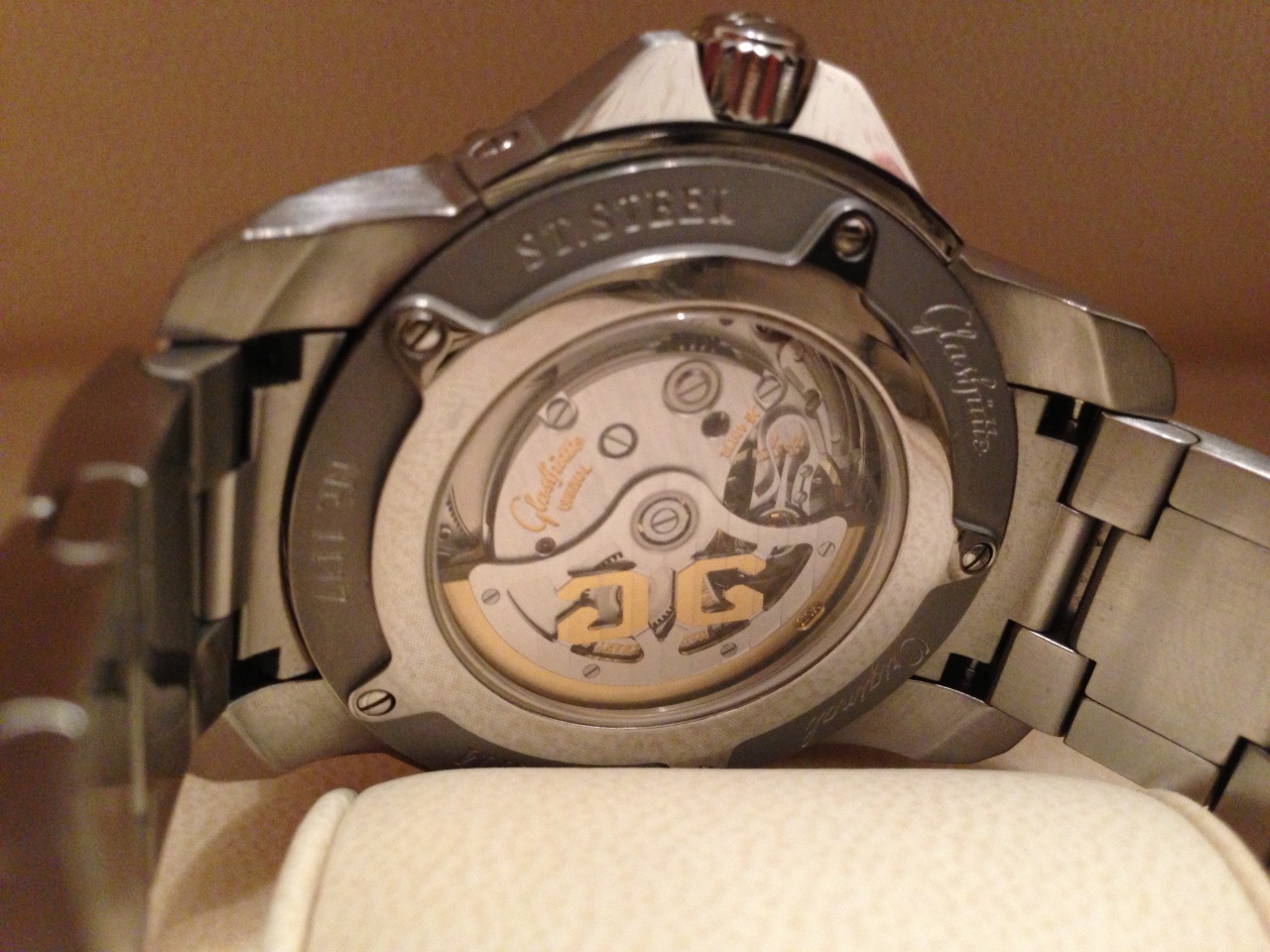 Стекло: сапфировое, задняя крышка прозрачная на 5 болтах