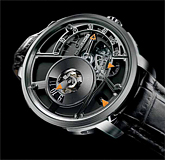 С турбийонами экспериментируют и другие независимые часовщики. К примеру, немец Томас Прешер создал трехосный турбийон – пока единственный в мире. Бернар Ледерер привез свой последний Tourbillon MT3, оснащенный сразу тремя турбийонами, вращающимися с разной скоростью. А вот Анисето Хименес Пита обратил внимание на блок механизма, отвечающий за завод часов: он совместил его с механизмом установки времени и убрал из часов головку завода.