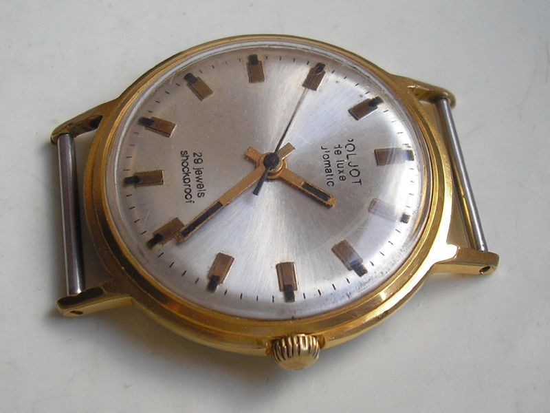 Недавно купил на eBay часы Полет 1968 г. (?) за $140. Прислали из Германии. В описании было сказано, что ходят и смотрятся как новые, без абразий и царапин (как я понял со своим лимитированым знанием немецкого). Пришли часы в обычном конверте (были обернуты в пластиковый пакетик), из за чего пошла тоненькая трещина на стекле. Лак циферблата немного потускнел и по краям покрылся коричневой пленкой.