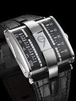Нечто похожее (правда, чисто внешне) представила немецкая компания из Гласхютте A.Lange & Sohne. Модель Lange Zeitwerk — первые наручные часы с индикаторами «прыгающий час» и «прыгающие минуты». Причем цифры большие и прекрасно читаемые, а потому саксонцы также не обошлись без модулей, накапливающих энергию для проворота четырех дисков. Помимо этого Lange Zeitwerk имеет дополнительный секундный циферблат и индикатор запаса хода. Модель выпускается в корпусе 41,9 мм из золота или платины.