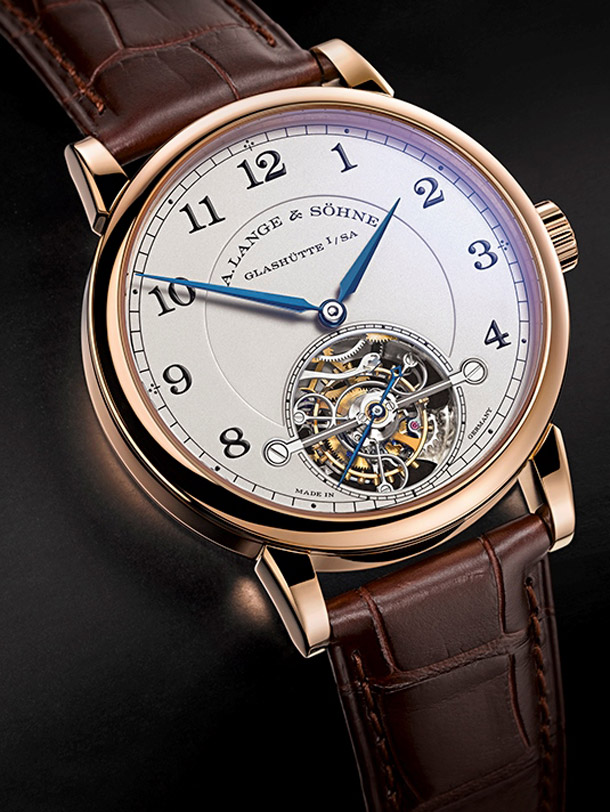Спираль и баланс изготовлены в мастерских мануфактуры Lange с чрезвычайной дотошностью, поэтому они оптимально подобраны друг к другу. Точность также выходит на первый план в скрупулёзной окончательной отделке всех деталей механизма, а настоящим венцом является алмазный накладной камень оси турбийона. Мануфактурный Калибр Lange L102.1 помещён в корпус гармоничных пропорций (диаметр 39,5 мм, толщина 11,1 мм), изготовленный из розового золота или платины. Часы с корпусом из платины выпущены лимитированной серией из 100 экземпляров, и это лишний раз подчёркивает эксклюзивный характер этой выдающейся модели. Первый турбийон A. Lange & Söhne, оснащённый устройством остановки секундной стрелки и устройством сброса секундной стрелки Zero-Reset, – ещё один пример того, что мануфактура твёрдо намерена никогда не останавливаться в поиске новых технических решений и постоянно стремиться к совершенству.