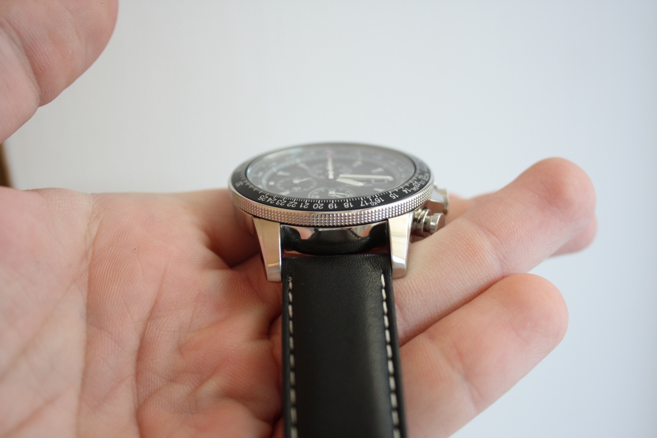 Секундомер с точностью показаний 1/20 сек и максимальным временем измерения - 59 минут 59 сек. Центральная стрелка - секундная стрелка хронографа. Счетчик минут расположен в положении 12 часов.