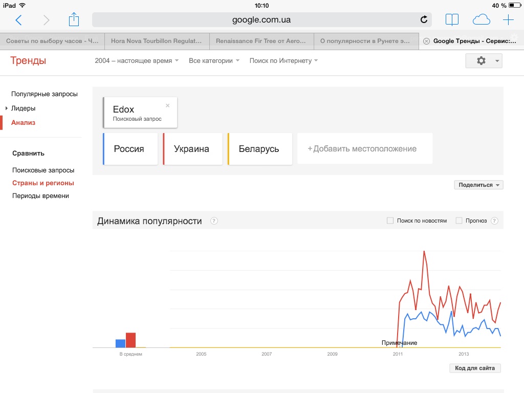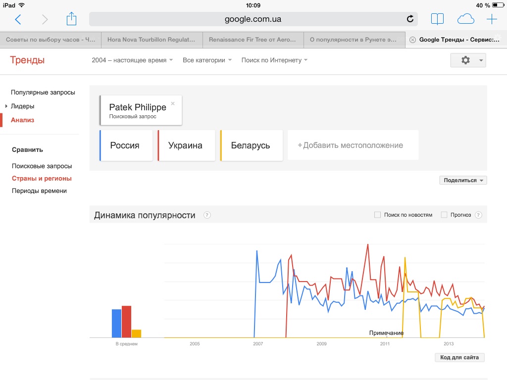 Меньше всего часы интересуют жителей Средней Азии: жителей Киргизии - 0,55 запроса на 1000 жителей, Узбекистана – 0,39 запроса, Азербайджана - 0,33 запроса, Таджикистана – 0,22 запроса и Туркмении – 0,11 запроса.