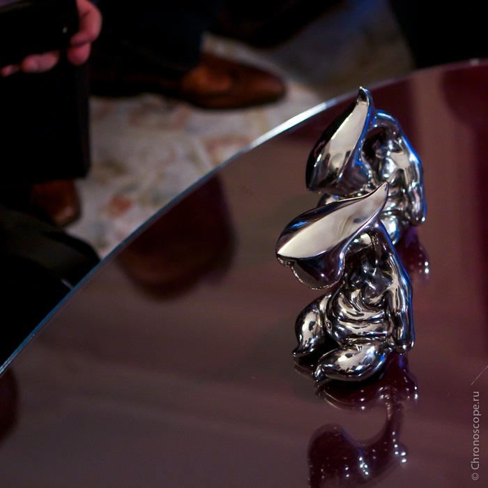 Надо добавить, что скульптуры в своих часах Бюссер использовал и прежде. В 2011 году, его команда подготовила часы Flying Panda для благотворительного аукциона Only Watch 2011. Панду на HM4 Thunderbolt тогда усадил другой китайский художник — Хуан Ханканг. Часы были созданы в единственном экземпляре.