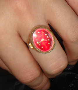 Вторые часы -кольцо. Здесь меня уверяют, что позолота. На ходу. те же камни, так же цифры.