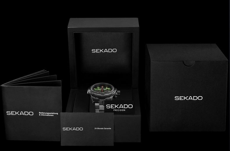- Доставлены они мне были в следующей комплектации: Часы - 1шт., Салфетка для протирки - 1 шт., Пользовательская инструкция - 1шт., Карточка гарантии - 1шт., Упаковочная коробка(Солидная, внушительная, тяжелая с подушечкой внутри и внутренней обивкой, основание покрыто материалом "под бархат") - 1шт. Мягкая картонная коробка(служит как упаковка для другой коробки, дабы не повредить ее, на ней также присутствует надпись SEKADO). На стекло самих часов наклеена заводская пленка, пленка наклеена и на заднюю крышку.